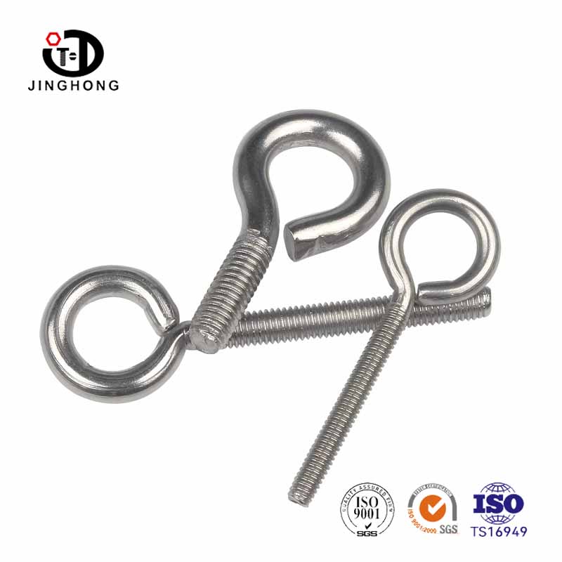 Jinghong fasteners are manufactured with tight processing technology, which makes the 304 stainless steel turned eye bolt smooth in surface, accurate in size, easy to be installed with other fasteners and connectors, and improves work efficiency and quality. 304 stainless steel turned eye bolt has a bright appearance, not easy to fade and discolor, can maintain beauty and durability in the long term use process, improve the overall quality of the product.