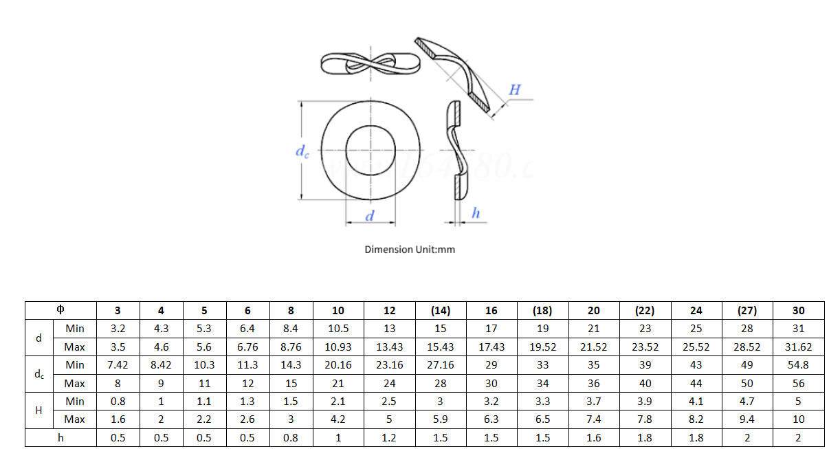 This product is a wave Spring Washer that complies with the GB/T 955-1987 standard, designed specifically for high demand connection scenarios such as heavy machinery, automobiles, and electrical appliances that experience vibration and impact. The core material of the product is 65Mnspring steel. Its wavy design and high elasticity of high-quality spring steel can provide long-lasting and reliable anti loosening locking ability in continuous vibration environments, with excellent anti vibration and anti fatigue performance.