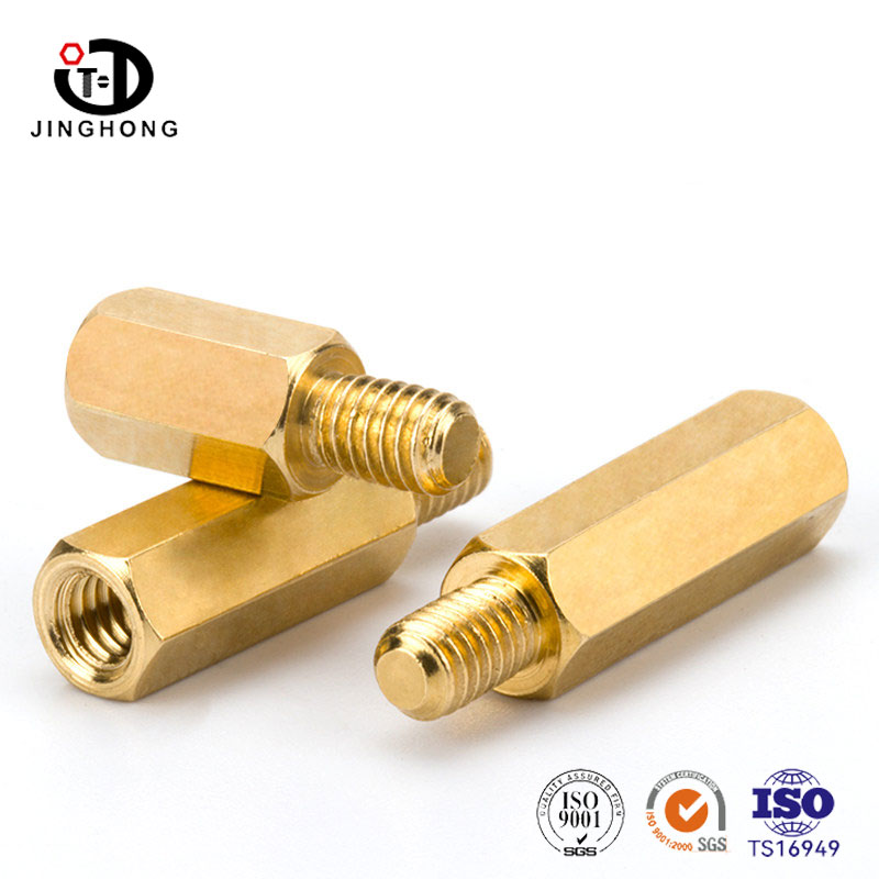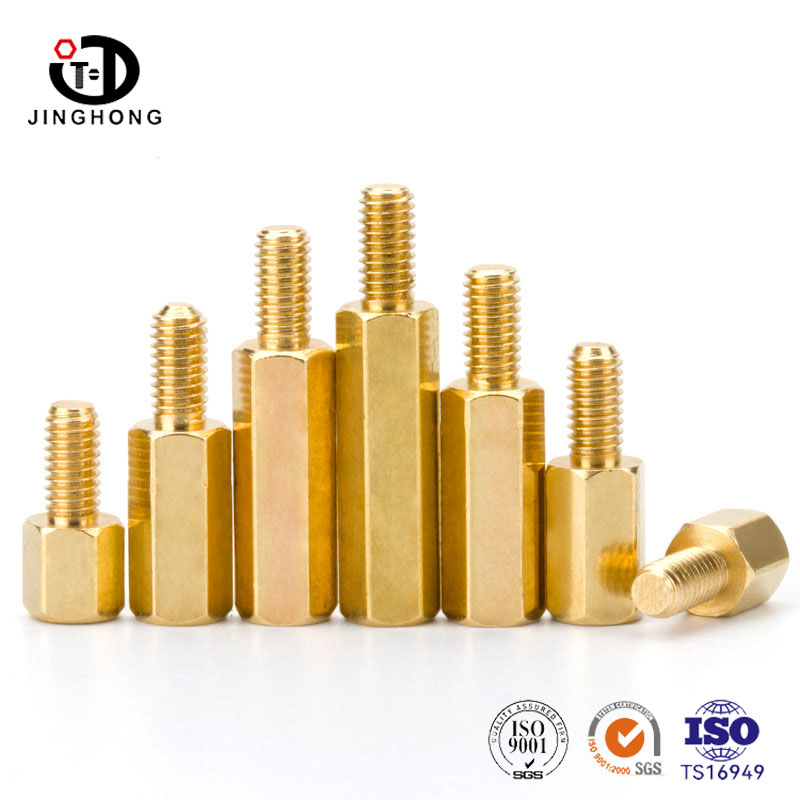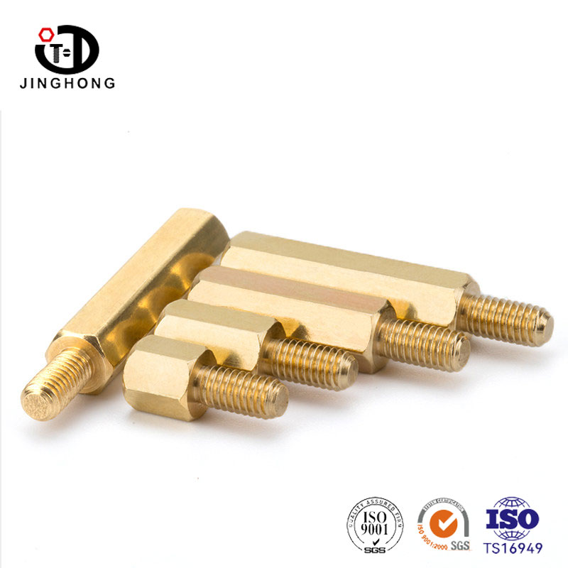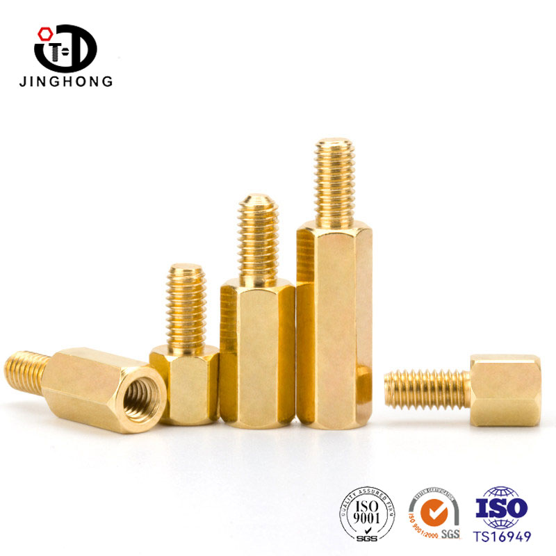 Jinghong Manufacturer specializes in providing Brass Spacers, made of high-quality brass with internal threads on one end and hexagonal columns on the other end. The hexagonal shape is easy to tighten with a wrench, and the installation is firm and not loose. The internal thread is used to connect bolts or screws. The product has good conductivity and corrosion resistance. There is sufficient stock of regular specifications in stock, and the length can be customized according to demand.