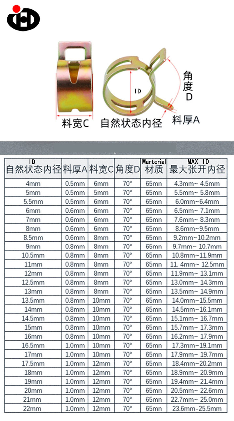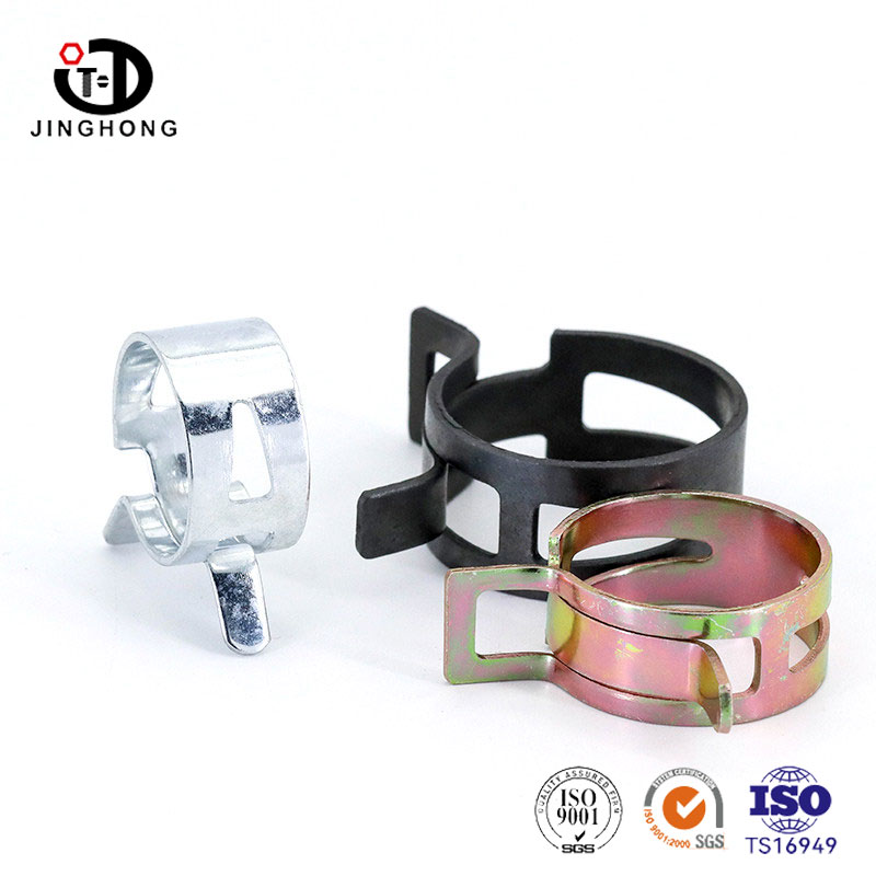 Jinghong specializes in providing Carbon Steel Spring Clamp, made of high-quality 65Mn spring steel with galvanized surface treatment. The product utilizes metal elasticity to form a locking force, which can compensate for fluctuations caused by temperature changes or hose aging. It can be installed by hand without the need for tools.