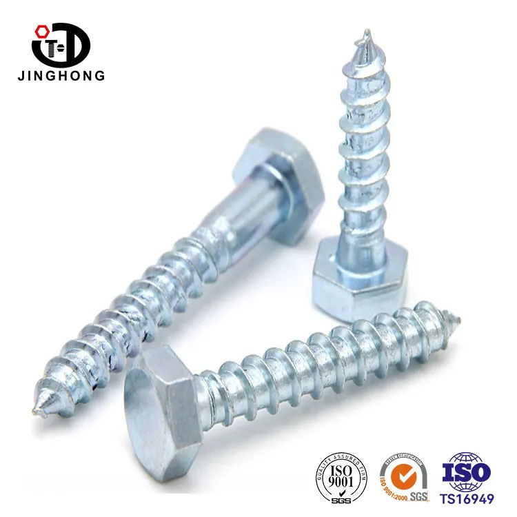 Jinghong factory produces galvanized DIN 571 wood screw concrete screws, and its hexagonal head design is conducive to the use of tools such as wrenches, and the product has been galvanized, which enhances its anti-corrosion and anti-rust ability and prolongs its service life.The wood screws is the best choice for industry and manufacturing, Jinghong provides high-quality service and complete after-sales system, and is the best choice for customers.