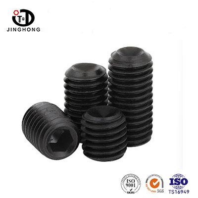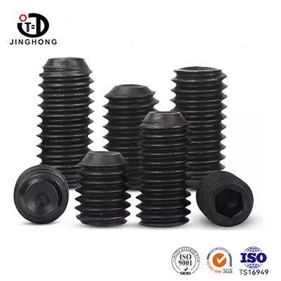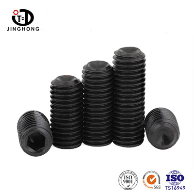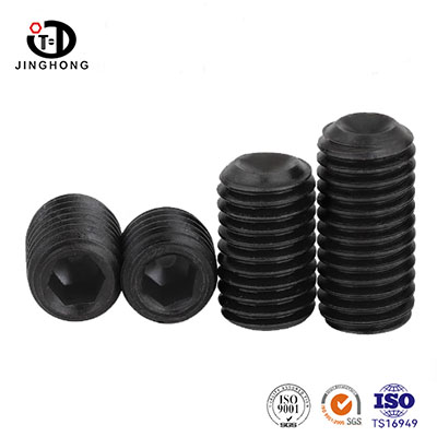 Jinghong Fasteners' Gr12.9 Black Hexagon Socket Set Screw with Cup Point is manufactured from high-quality alloy steel, utilizing precision cold heading and strict heat treatment to meet ultra-high strength standards. The unique cup point design effectively embeds into connected surfaces, enabling precise axial fixation and anti-loosening performance, while the black oxide coating enhances corrosion resistance. Widely used in machine tool spindles, transmission systems, and mold structures, these screws provide reliable long-term performance in high-load and high-vibration industrial applications.