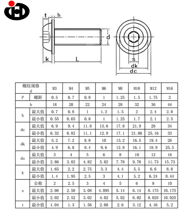 Selected with high-quality carbon steel material, it undergoes heat treatment for strengthening. It has high mechanical strength, strong tensile force resistance, and is not prone to fracture or deformation. The overall black-blackened surface treatment effectively enhances its wear resistance, rust prevention, and oxidation resistance, making it suitable for common industrial conditions. It comes with an integrated flange gasket, which increases the contact area under pressure, prevents pressure injuries and loosening, and eliminates the need for separate fitting of washers, thereby improving assembly efficiency. The round-head hexagonal structure is compatible with hexagonal wrenches, facilitating easy disassembly and assembly, ensuring stable torque transmission, and being less prone to slip. It has a complete range of specifications, from M3 to M16, with standard sizes available. It has high precision, clear and smooth tooth patterns, firm locking, and extremely strong versatility.