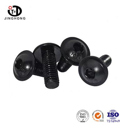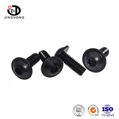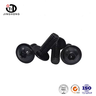 This Hexagon Socket Button Head Screws with Collar produced by Jinghong Fasteners. It undergoes overall blackening treatment and is available in specifications ranging from M3 to M16. It features an integrated flange retaining ring structure, eliminating the need for additional washers. The force is distributed evenly and the locking is stable. The carbon steel base material has high strength and is wear-resistant and durable. The blackened surface can effectively resist oxidation and rust. The internal hexagonal structure is convenient for disassembly and assembly, with standard dimensions and precise tooth patterns. It is widely used in various industrial fastening assembly scenarios such as mechanical equipment, automation components, tooling fixtures, computer cases and cabinets, etc.