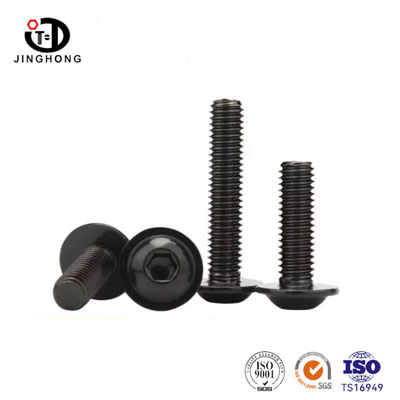 The Hexagon Socket Button Head Screws with Collar produced by Jinghong Fasteners are made of high-quality carbon steel and are processed as a single piece. They undergo overall black hardening and blackening treatment. The specifications cover the full range from M3 to M16. They are strictly manufactured in accordance with standard processes. They come with an integrated flange washer structure and are designed with round-head internal hexagonal shapes. The structure is compact, formed as a single piece without the need for additional washers. The locking force is uniform, with high strength and good wear resistance. The appearance is neat. They are commonly used in fields such as mechanical equipment, automation accessories, and mold fixtures as high-strength precision fasteners.