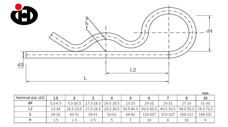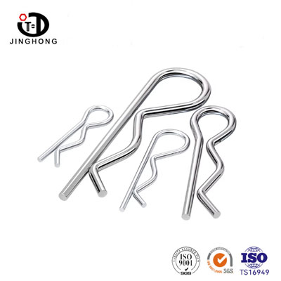 The R-type pin (also known as an Split Pins) is a fastener with excellent elasticity. This product is typically made of high-quality spring steel or stainless steel wire, and is formed through cold heading, bending, and heat treatment, exhibiting a typical "R" shape or hairpin-like structure. Its design includes a relatively straight insertion end and a curved elastic arm. During installation, the elastic tension of the material is utilized to engage the pin into a shaft pin or hole, relying on its own structure to achieve self-locking and anti-loosening. It is commonly used to prevent components such as hinge shafts and pins from falling off under vibration or movement.