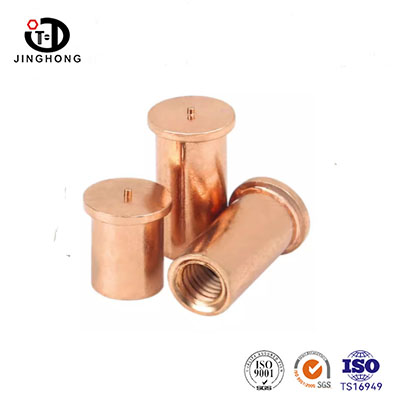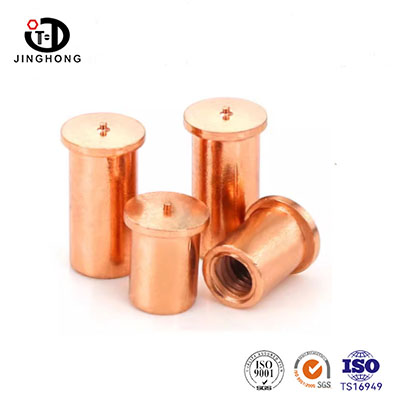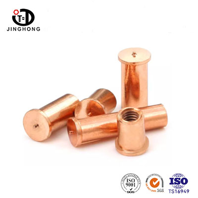 Stud Welding with Internal Thread is made of high-purity copper, which has excellent electrical conductivity, thermal conductivity and corrosion resistance. This product is available in specifications ranging from M3 to M8 and is specially designed for welding processes such as brazing and fusion welding. It is suitable for scenarios where permanent and high-strength embedded connections need to be achieved on metal substrates. The copper material effectively prevents electrochemical corrosion and its good ductility enables it to form a dense metallurgical bond with various metal substrates during the welding process. The welding nut columns produced by Jinghong Fasteners can provide customized lengths and surface treatments, and are widely used in equipment manufacturing and installation in industries such as electrical, refrigeration, power, and chemical.
