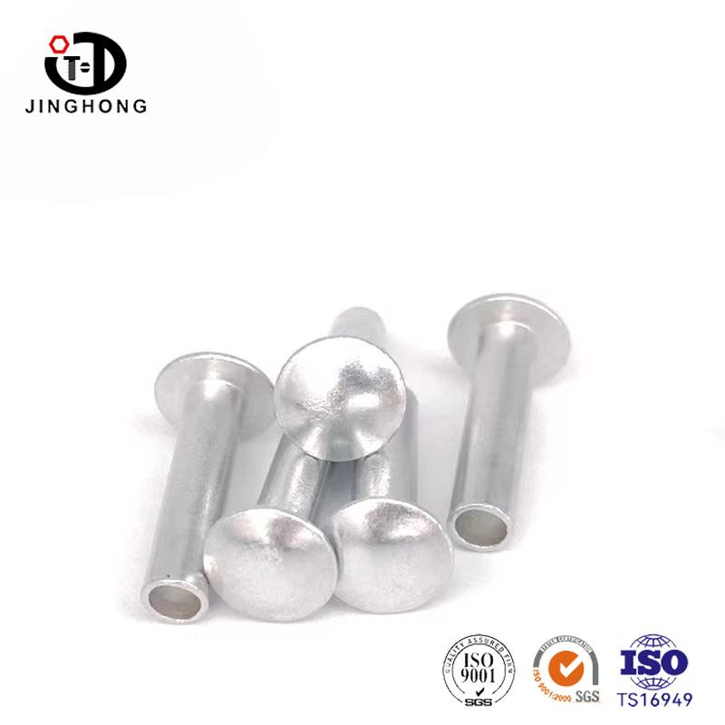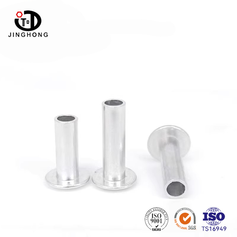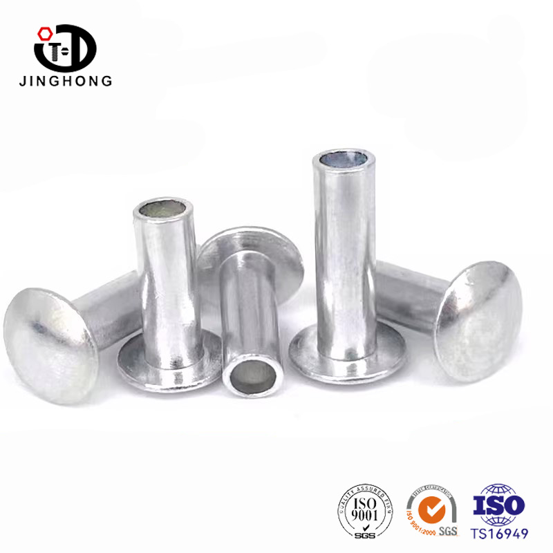 Jinghong Factory specializes in producing Semi Tubular Rivets, with specifications ranging from M2-M8 and multiple lengths to choose from. Various high-quality materials are used, and the surface can be treated in various ways. The head is semi-circular, beautiful and elegant, with a hollow rivet design that is lightweight and will not harm the workpiece after riveting. Regular specifications available in stock, supporting non-standard customization.