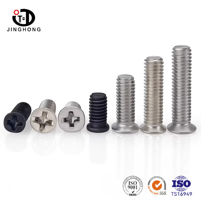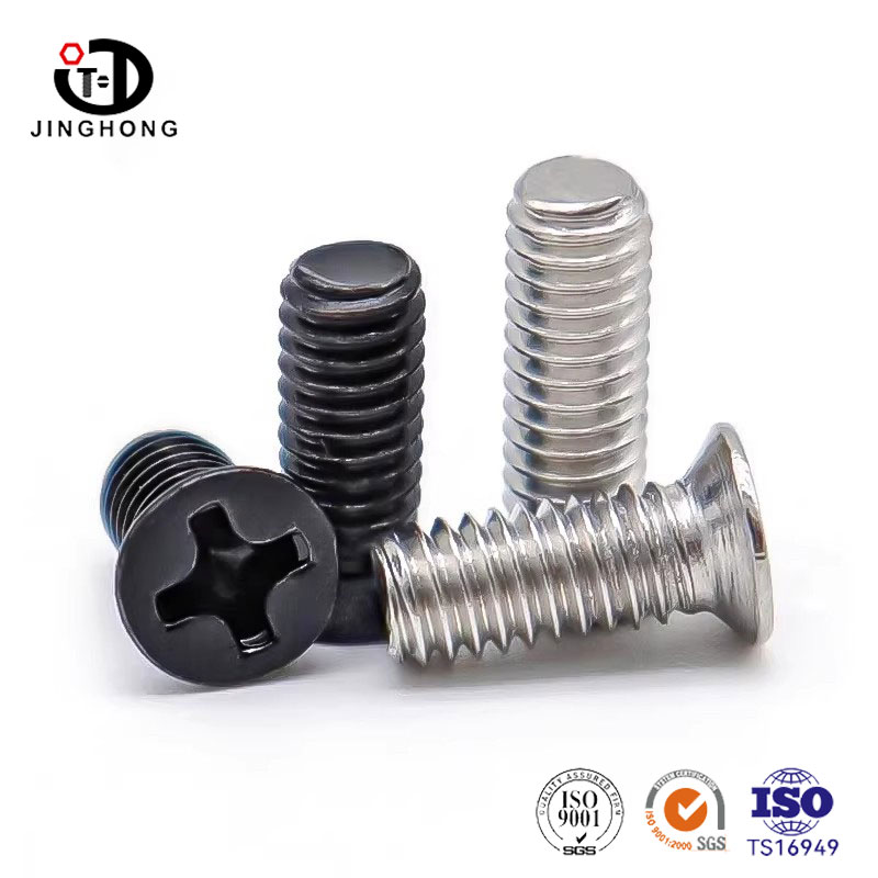 Jinghong Factory specializes in producing Small Flat Head Laptop Screws, which are made of materials such as stainless steel and carbon steel, and can undergo various surface treatments. The product features a cross groove design with a low head height, which can be installed flush with the surface of the mounting component. It is suitable for precision instruments, laptops, and other devices. Regular M2-M4 specifications available in stock, supporting non-standard customization.