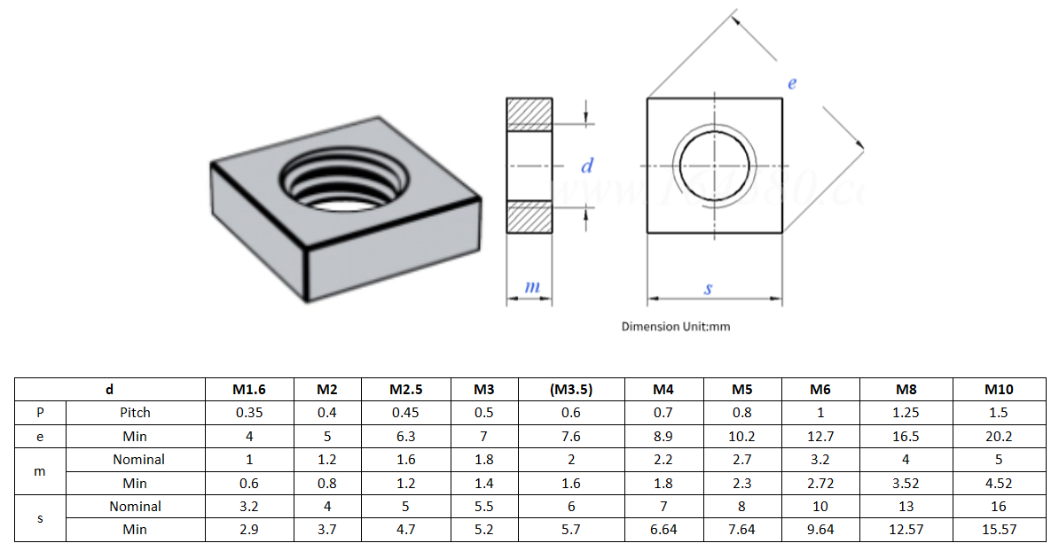 This product is a German standard Square Thin Nut made of Q195 carbon steel, which meets the DIN 562-2013 B-level standard. It has the characteristics of thin thickness and compact structure, suitable for occasions with limited installation space. The product specifications cover M1.6-M10, with four square corner designs for easy installation. It is widely used in connection scenarios with strict thickness requirements, such as sheet metal parts, chassis cabinets, and ordinary structural components.