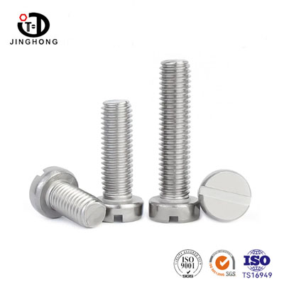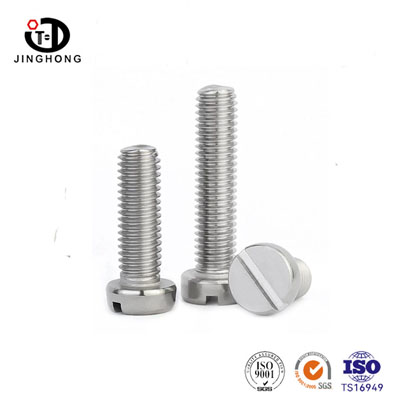 SS304 GB65 slot head screws are stainless steel fasteners that comply with the Chinese national standard GB/T 65. They are made of austenitic stainless steel SS304 (A2-70). The head of the screws is a low-profile flat head (Cheese Head), and there is a V-shaped slot on the top, which is suitable for standard V-shaped screwdrivers for driving. The threads are designed as full threads or half threads. The surface is usually maintained with the natural luster of stainless steel or undergoes passivation treatment, featuring excellent corrosion resistance and hygiene performance. The specifications range from M2 to M12, and are widely used in electrical appliances, instruments, and light industrial equipment, where there are high requirements for rust prevention and appearance.