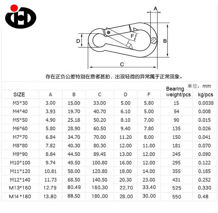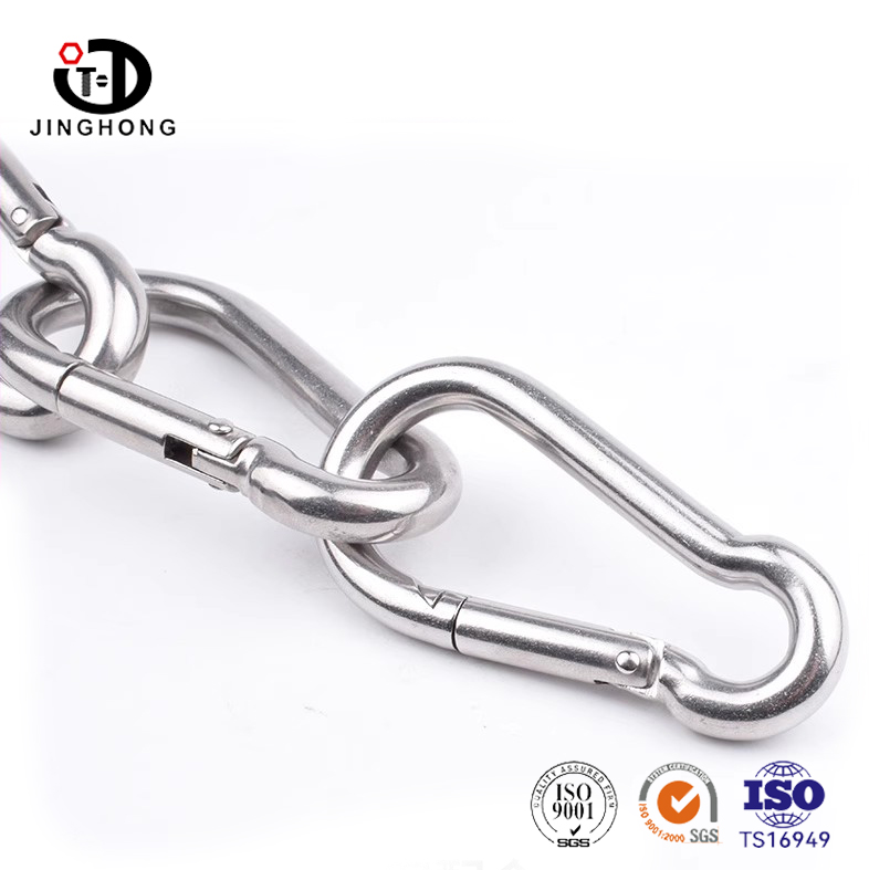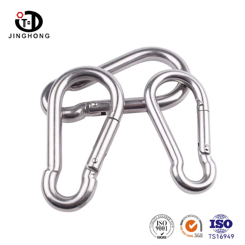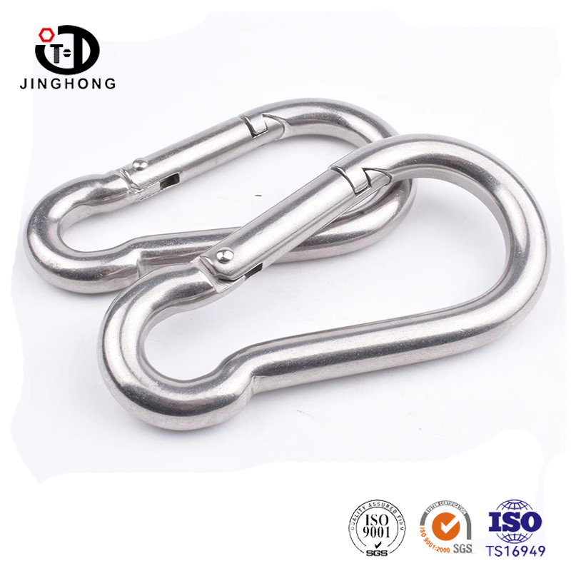 JINGHONG stainless steel climbing buckle is engineered for durability, safety, and versatility in both industrial and outdoor settings. Crafted from high quality stainless steel, this D-shaped lifting hook offers excellent corrosion resistance and strength, making it suitable for lifting, rigging, towing, securing, and climbing applications. The carabiner design includes a spring-loaded gate mechanism for quick and secure attachment to ropes, chains, slings, or other hardware.