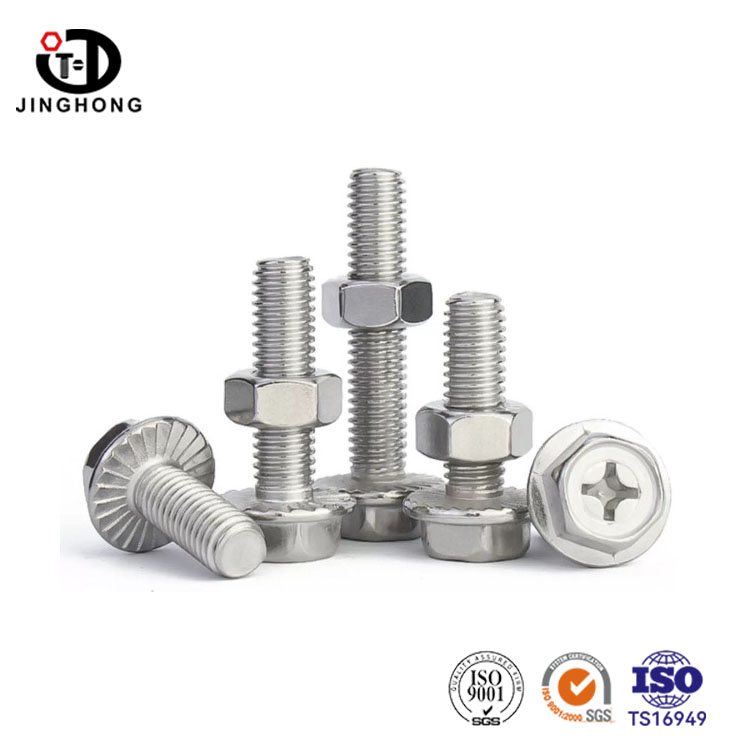 Stainless steel hexagonal flange bolts are made of high-quality stainless steel materials, which have high tensile strength and yield strength, and can withstand large coincidence to ensure that the connecting parts will not loosen or break during use. 304 stainless steel has good corrosiveness and can resist the erosion of a variety of chemicals, so that the bolt can maintain long-term stability in harsh environments such as dental arch and ocean.