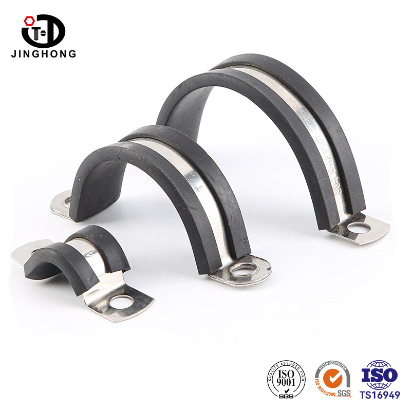 All the materials used in U-shaped cable hose clamp with strip are in line with environmental protection standards, non-toxic and harmless, recyclable, the rubber strip is made of environmentally friendly rubber material, to achieve green production, JINGHONG manufacturers not only attach great importance to the quality of products but also continue to pay attention to environmental issues, adhere to the concept of sustainable development, adhere to green production.