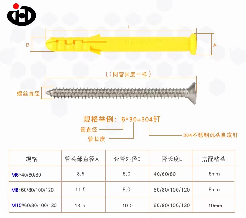 Strong expansion force: When the screw is screwed in, the pipe body produces controllable radial expansion, fully fitting with the hole wall, providing excellent anti pull and anti shear performance, and preventing loosening.